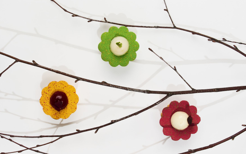 Цветочные формы появляются как намек на ожидание весны, которое уже совсем скоро будет витать в воздухе. Коллекцию дополняют авторские трюфели и новая линейка конфет.