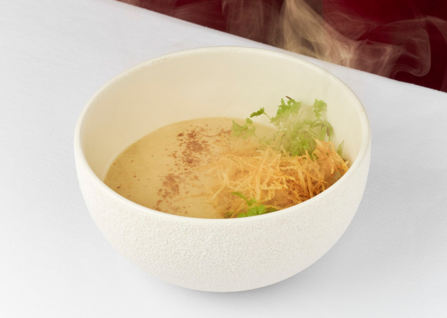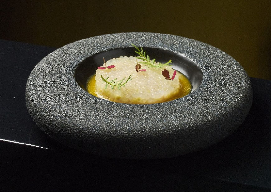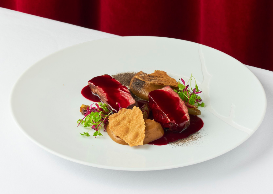 ВЫРЕЗКА ГОВЯДИНЫ / МУСС ИЗ КАПУСТЫ / СВЕКОЛЬНЫЙ СОУС С СУСЛОМ / ПЕЧЕНЫЙ ШАЛОТ / РЖАНОЙ ЧИПС